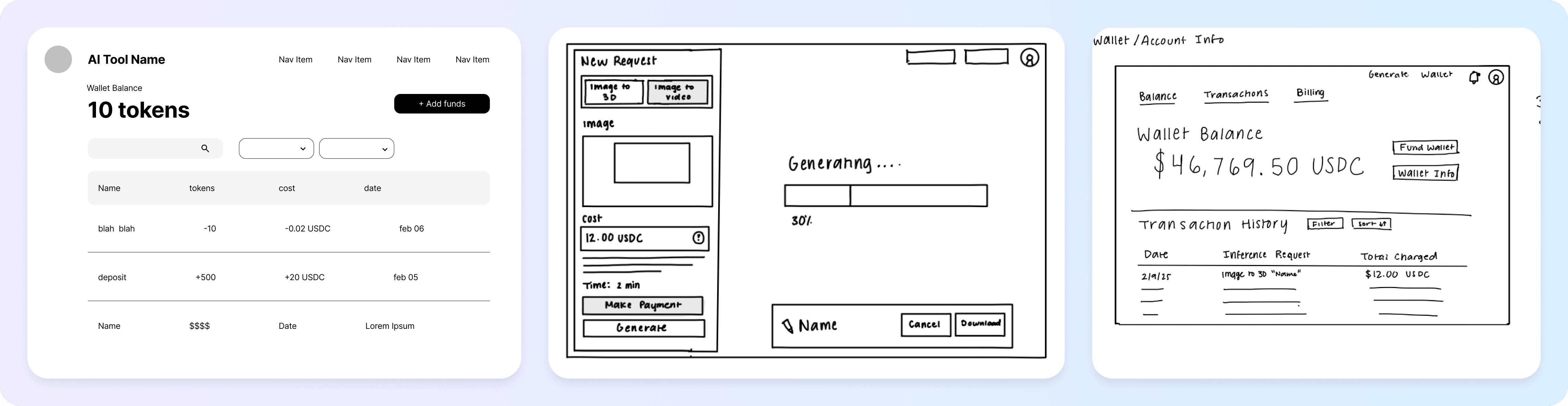 We designed a proof-of-concept AI billing platform demonstrating 4 AI generation capabilities and how usage could be metered, billed, and visualized through Circle’s ecosystem. I led the design of the developer analytics dashboard, which became the primary mechanism for helping developers visualize how usage translates into specific costs and revenue. The final concept was presented internally to Circle’s VP of Product and Developer Products team of over 100+ engineers.