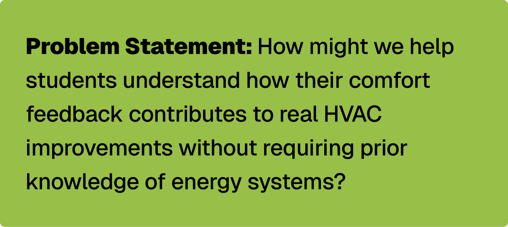 TherMOOstat operates at the intersection of student satisfaction, behavioral change, and invisible infrastructure. Early exploration revealed a key tension: while students wanted comfortable classrooms, they lacked mental models for how HVAC systems worked or how individual feedback could lead to change.